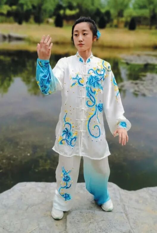 两臂在腰脊转动的带动下,上下左右循环运转,状似行云流水,故称云手。