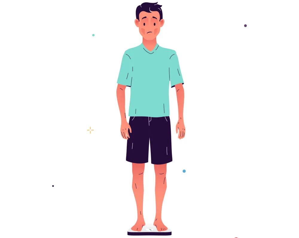 什么是消瘦 消瘦是指由各种原因引起体重下降且低于正常下限的一种状态。通常认为,体重低于标准体重的10%,即为消瘦。 目前,国内外多采用体重指数(BMI)来衡量我们的体重是否适中。计算公式:BMI=体重(kg)/身高2(m2)。成人标准:BMI在18.5~23.9kg/m2为正常,BMI<18.5kg/m2为消瘦。 比如,一位体重48kg的女性,身高165cm,BMI为17.6kg/m2,即为消瘦。此外,若近6~12个月体重在原有基础上下降5%以上,也应警惕消瘦。