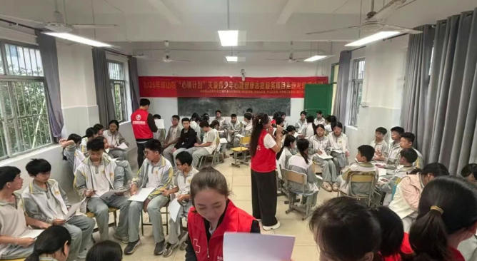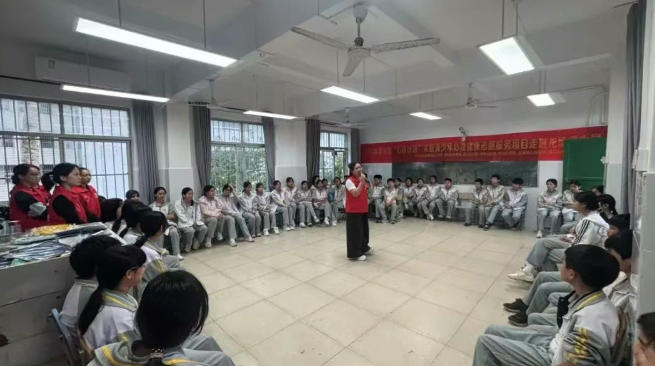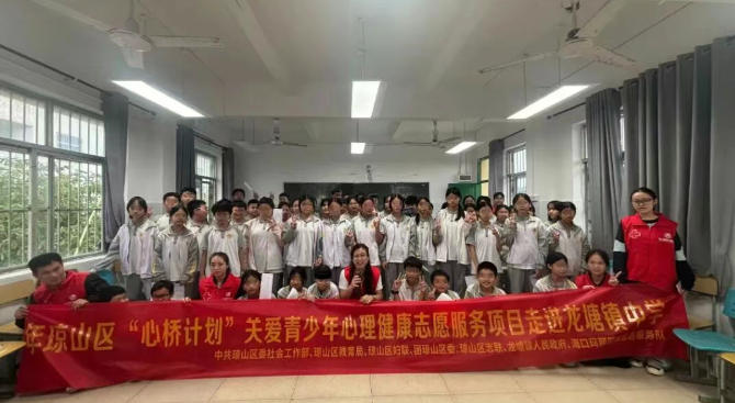 2025年12月3日下午,由中共琼山区委社会工作部、琼山区教育局、琼山区妇联、团琼山区委、琼山区志联、龙塘镇人民政府联合主办,海口玛丽医院志愿服务队精心承办的“琼山区‘心桥计划’关爱青少年心理健康志愿服务项目”,走进龙塘镇中学七年级的两个班级,用“绰号之下,我心如何?”和“时间馅饼”两场心理团辅活动为孩子们的青春成长注入力量。