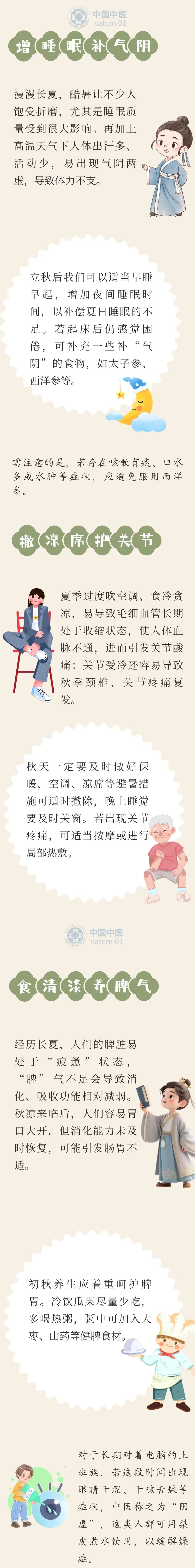 立秋之后,夏秋交替的大幕已然拉开。从我国北方地区开始,凉风悄然而至,夜间的闷热感也在逐渐消退。在中医理论中,强调“天人相应”的健康理念,气候的变化需要我们及时调整养生策略——